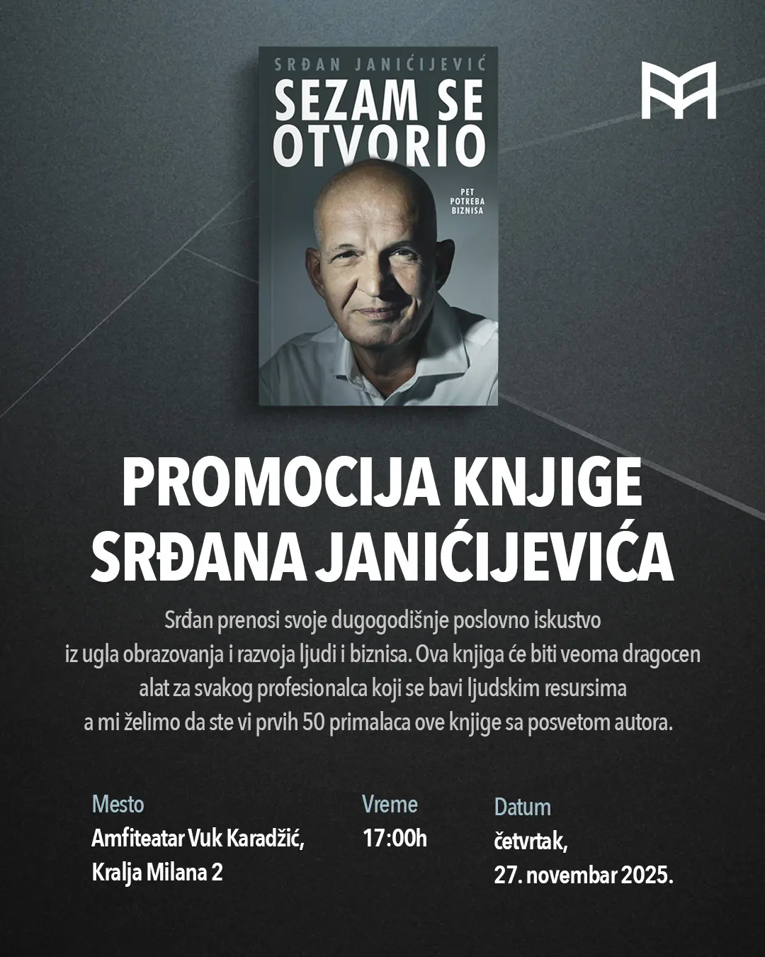 Zato Vas pozivamo na ekskluzivnu promociju knjige Srđana Janićijevića pod nazivom "Sezam se otvorio - 5 potreba biznisa".